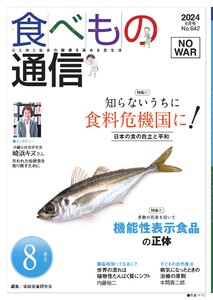 食の安心と日本の伝統食と農業を大切にしている『食べもの通信』。アトピーに悩む方、免疫力を上げたい方、次世代の健康を守りたい方、安全性に関心のある方にイチオシの月刊誌。食育の資料としても、一番頼りになる市民派の情報誌と定評。薬膳や酵素食、オーガニックな視点を取り入れた内容も魅力です。子どもの食事、手作り保存食など、すぐに役立つレシピも連載。安全性、健康・栄養、食文化、食教育、食料自給の5つの視点が共感を呼んでいます。家庭栄養研究会編集。 ●広告●作ってみたい四季の保存食●野菜をおいしく●フランス ドルドーニュの田舎から●コップひとつから始める「自給自足」教室●インタビュー●目次●8月の旬●特集1 甘く見ないで、脂肪肝●特集2 衝撃! 水道料金はなぜ値上げするのか?●子どもの食事 おかわりちょうだい!●脳の若々しさを保つ食事●未来食堂 食がつなぐ新時代●ピカピカ簡単!●暮らしのなかの有害物質●がんが消えていく生き方●続・とっておきの温泉宿●私もひとこと●情報トピックス●家栄研だより●読者の交流ひろば/編集後記●食べもの通信社NEWS●読者プレゼント●広告